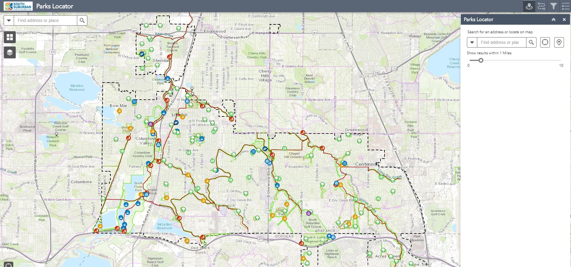 South Suburban Park and Recreation District’s (SSPRD) new interactive trails, and parks and facilities maps provide a more robust experience and offer easy access to SSPRD’s amenities. The maps allow users more functionality and customization than ever before via their mobile or desktop device.